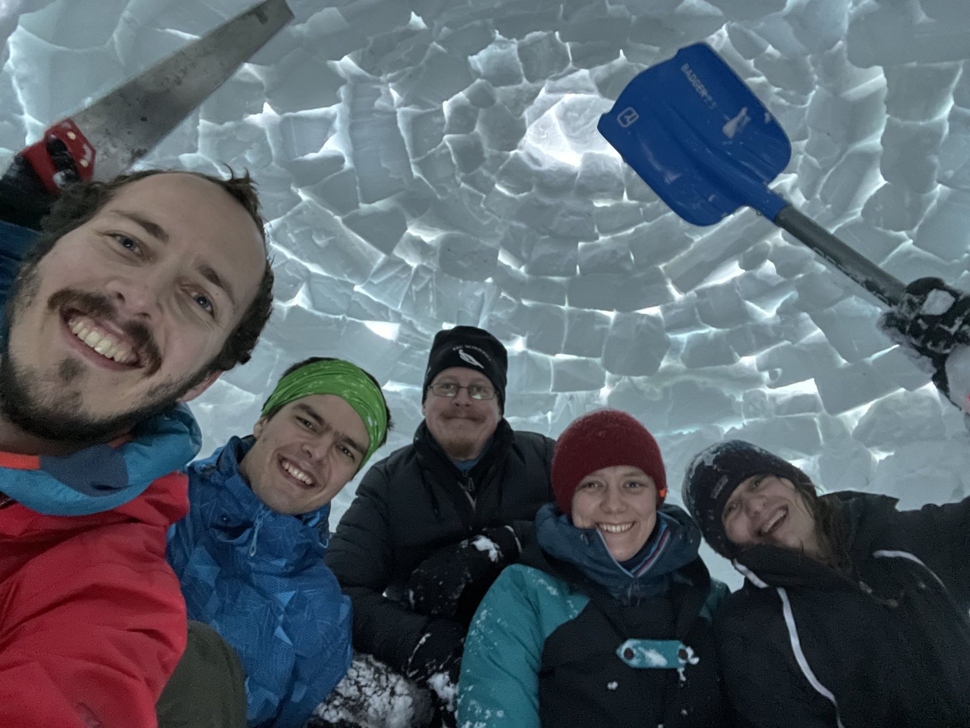 Wir verbringen eine wundervolle Nacht in einem riesengroßen Iglu. Es wird fast richtig warm im Iglu, so mancher hat den Schlafsack in der Nacht offen.