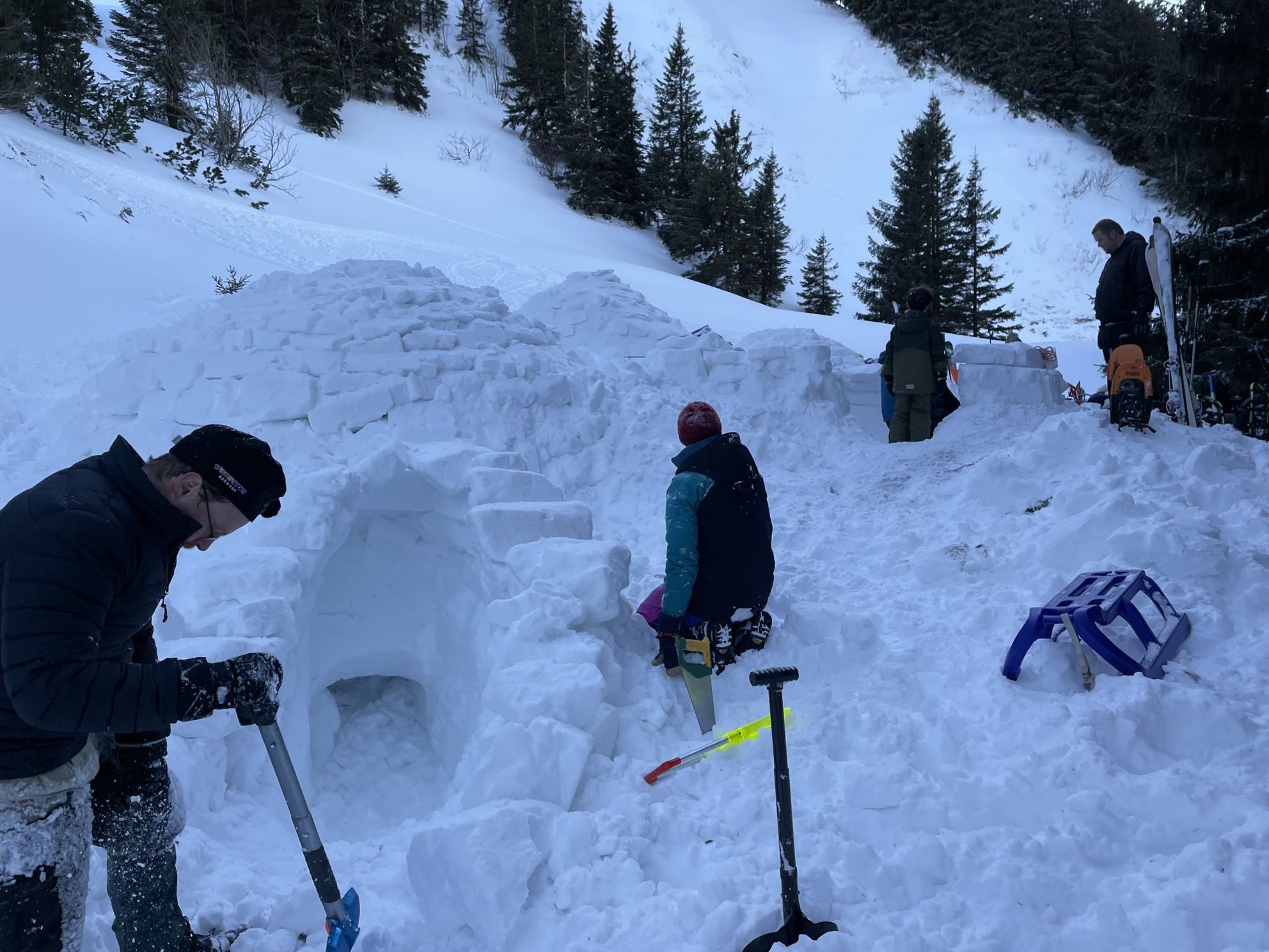 Dankenswerterweise hat er sich bereit erklärt, uns an seinem reichen Wissensschatz teilhaben zu lassen. Das Wort "Wissen" lässt uns kurz zusammenzucken, da der Großteil der Leiter- und Roverrunde die Schulzeit in irgendwelchen Ecken verbracht hat. Schnell wird uns aber bewusst, dass Iglus keine Ecken haben und man bei mangelhafter Leistung maximal im Kreis laufen müsse.