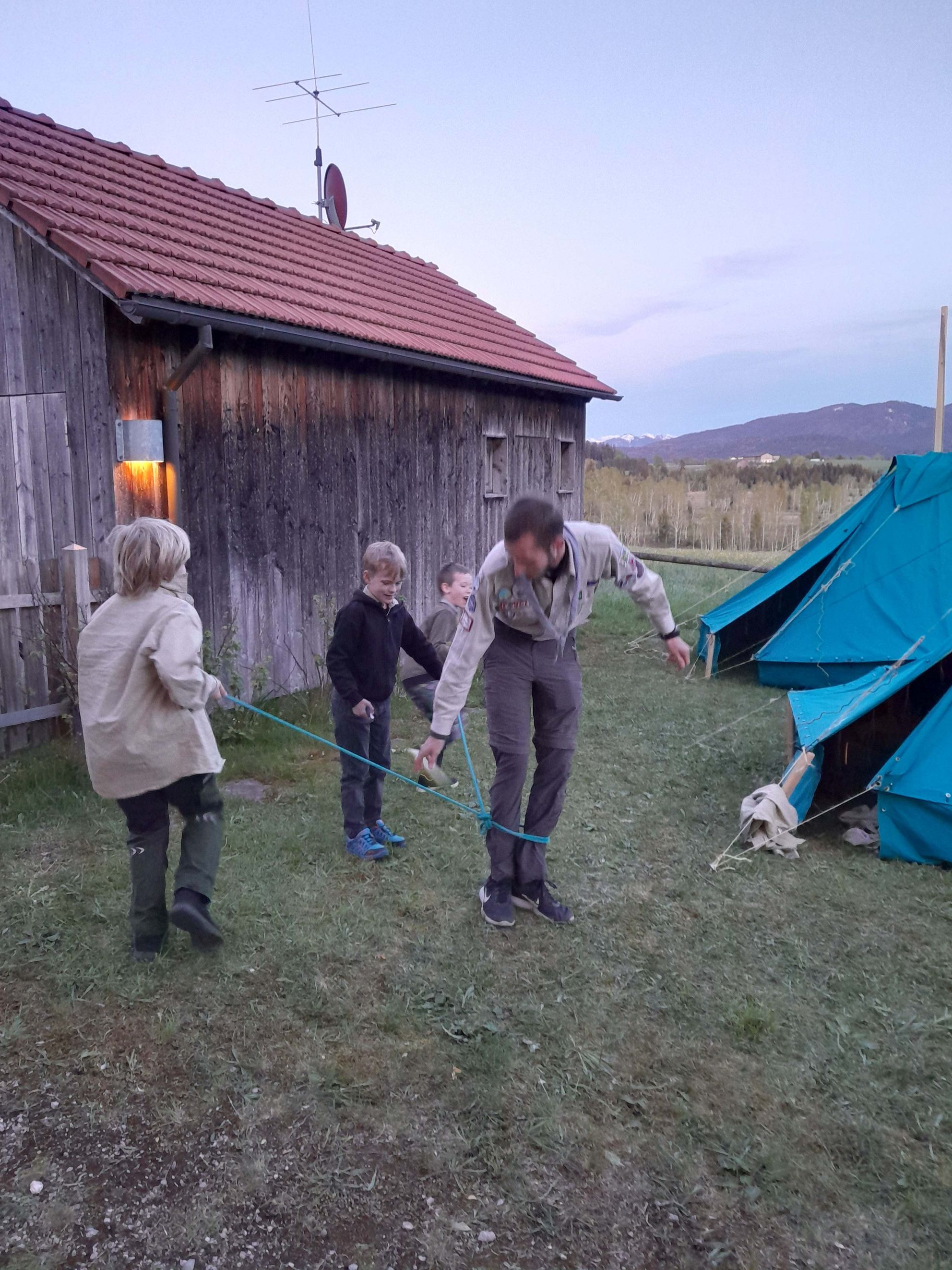 Am nächsten Tag mussten wir dann alles wieder einpacken, Frühstück herrichten, alles aufräumen, kehren, Zelte abbauen und natürlich spielen.