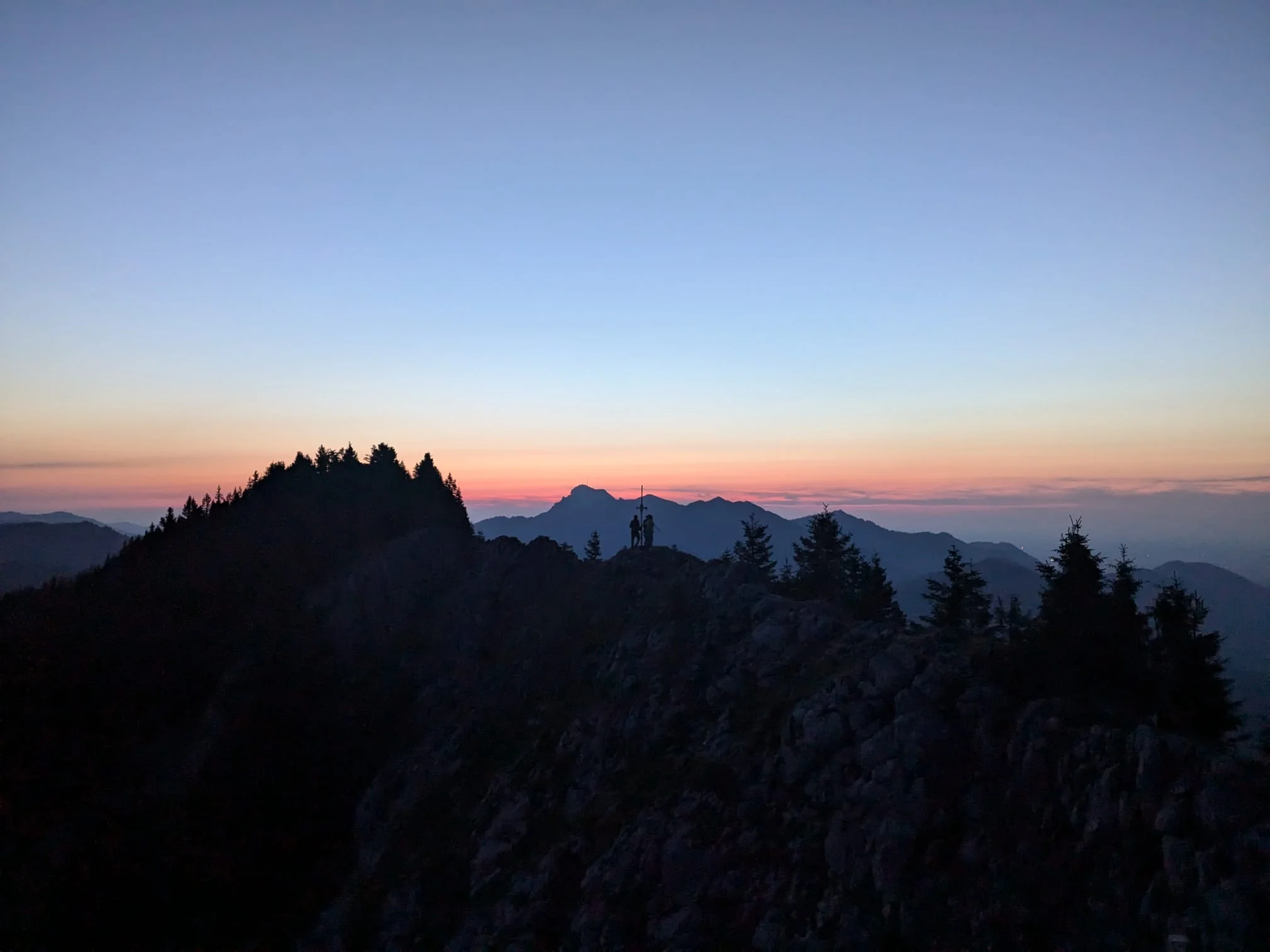 Den Seeberg am Anfang haben wir ausgelassen, unser erster Pflichtgipfel war der hohe Traithen. Die Abstiege Nachts waren extrem feucht und rutschig und damit super herrausfordernd. Da wir das ganze gemütlich angehen wollten haben wir dann vor dem zweiten Pflichtgipfel, dem Wendelstein, unser Nachtlager aufgeschlagen und von 3-6.30h geschlafen.
